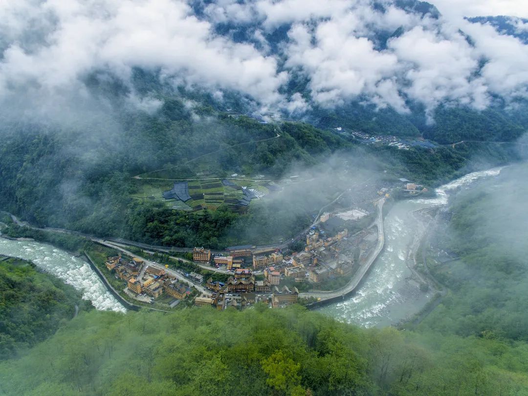 云雾缭绕的云南贡山独龙族怒族自治县独龙江乡(2019年4月16日无人机拍摄)。新华社记者 江文耀 摄