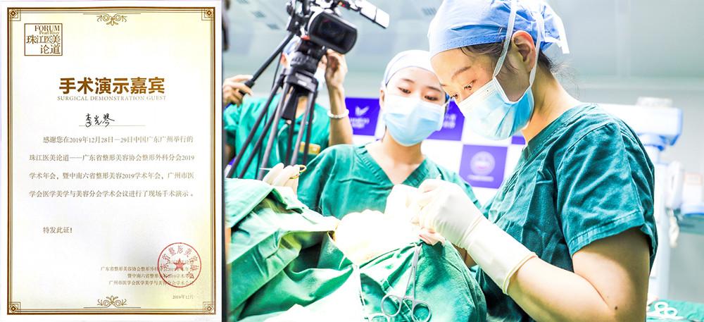 李光琴院长两度登上珠江医美论道学术平台直播展示,在2019年珠江医美论道省整协学术年会上,伊尔丝美眼被指定为大会手术演示项目。李院长亲自演示该技术,来自中南六省数百名同行专家一起进行观摩学习。