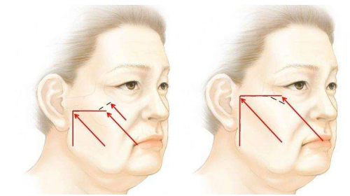 而慢慢我们迎来得第二代技术,就是以颞部(脸部上方、头部2边头骨软组织,特指我们日常生活中俗称的太阳穴部位)、发际线小切口的“小拉皮”。