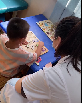 铮铮来院时,我们在初诊检查后,给她安排了一节孤独症康复训练课程: