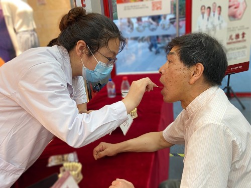 活动现场,50多岁的张女士告诉医生,自己经常左侧牙疼,吃东西也十分不方便,很后悔自己年轻的时候没有好好的保护好牙齿,上海徐浦中医医院口腔科张可医生仔细地为张女士做了免费口腔检查,耐心的帮助张女士分析口腔问题,提供具体的防护或诊疗建议,指导张女士保护牙齿、预防牙病。