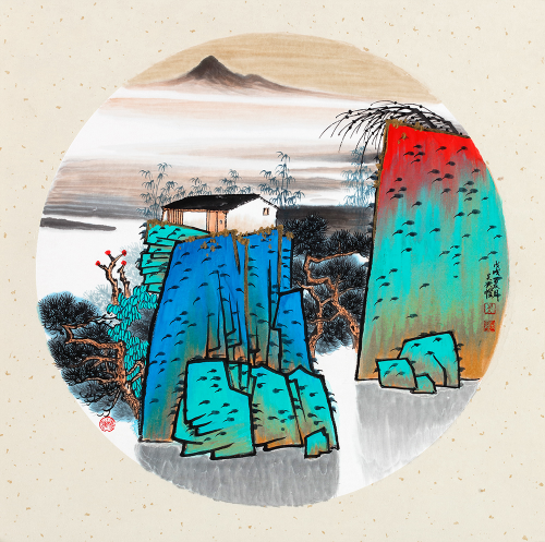 【小编的话】一幅典雅的圆形扇面山水画,是山水画中最具装饰性的种类,质朴的色彩,简单的勾画,一切意境自在不严中。好山好水好时光,值得在家细细品味~