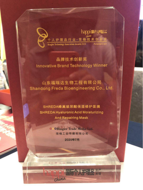 21日,“荣格2020年度个护行业技术创新奖”发布,山东福瑞达生物工程有限公司(简称“福瑞达美业”)旗下SHREDA(诠润)蜂巢玻尿酸保湿修护面膜成功入榜,荣获品牌技术创新奖。据悉,荣格技术创新奖由业内领先的B2B工业信息提供者荣格工业传媒有限公司主办,至今已成功举办16届,本次来自全国184个产品展开激烈角逐,经过严格的评审团评选和紧张的大众评选,最终只有53项产品和技术脱颖而出。