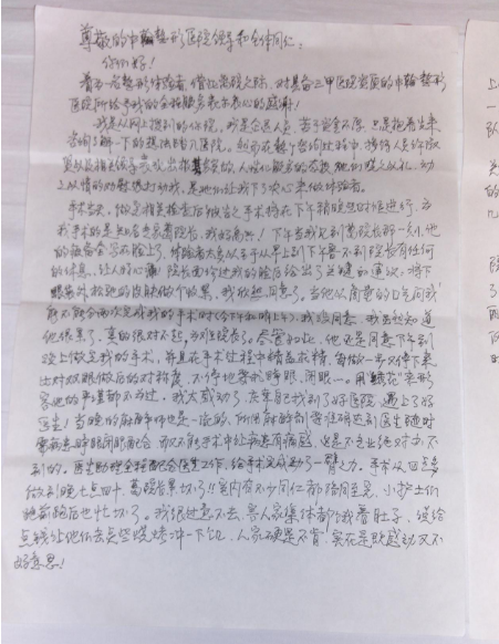 虽然每天求美者络绎不绝,手术室内室外的中翰人都忙不停,但还是被这这简单的纸张、一笔一划都是对中翰的肯定和支持感动到了。纸短情长,字句朴实而又饱含浓浓感激之情。