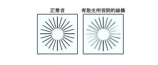 简单的说,散光的世界是模糊重影的。散光度数越高,模糊重影的程度可能越厉害。平行光线进入眼睛后,正常眼睛是光线准确聚焦在视网膜上,近视眼是聚焦点落在视网膜之前,而散光是指光线不能准确聚集于同一焦点。