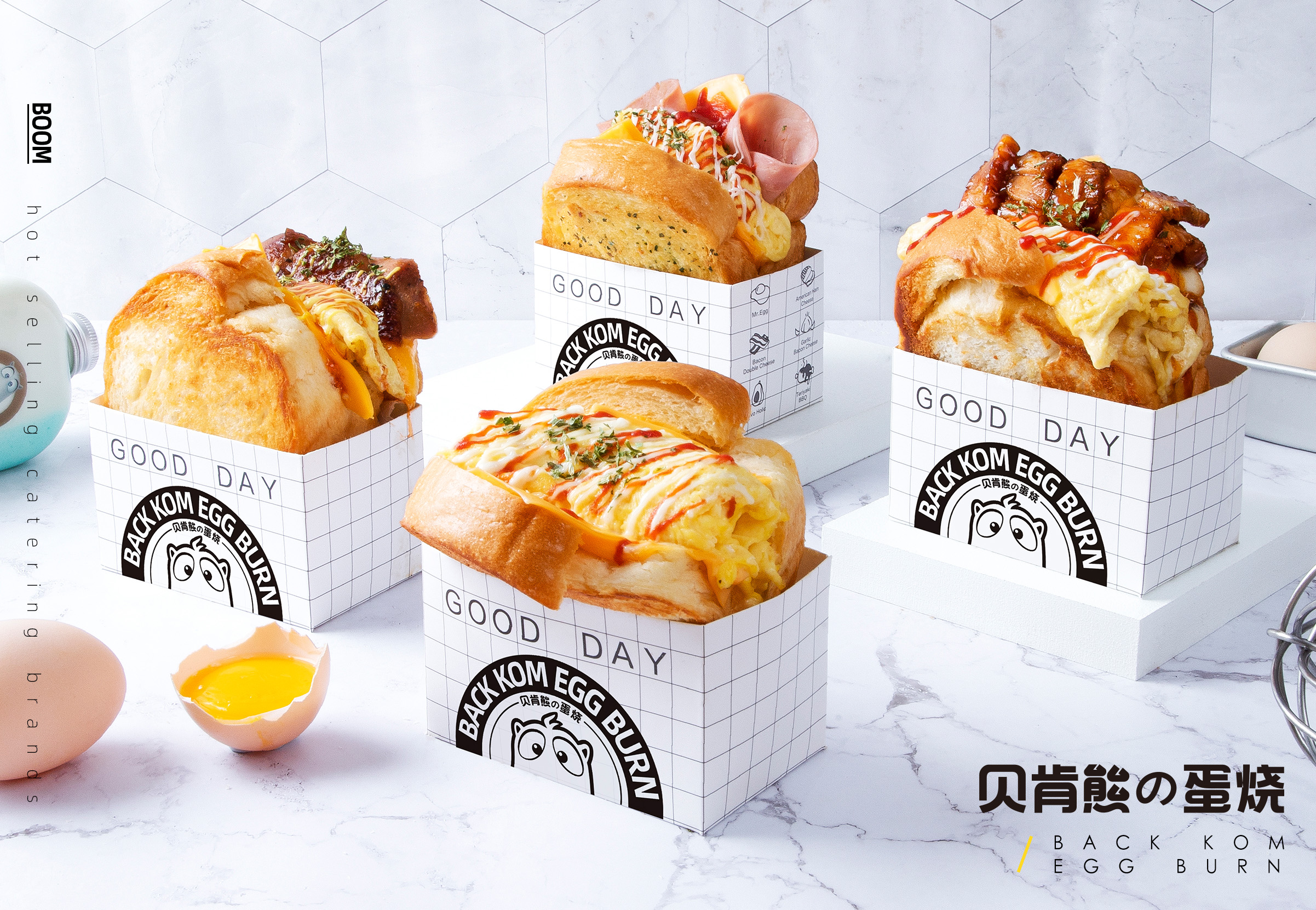 每一款都标配了吐司+比豆腐还嫩的无菌欧姆蛋,还有各种口味的配菜,用料饱满就要溢出来啦!简直就是一份元气满满的炸弹,无论是清早的早晨还是午间的工作餐,亦或是空闲之余的零嘴,只要咬上一口就会获得满满的幸福感!