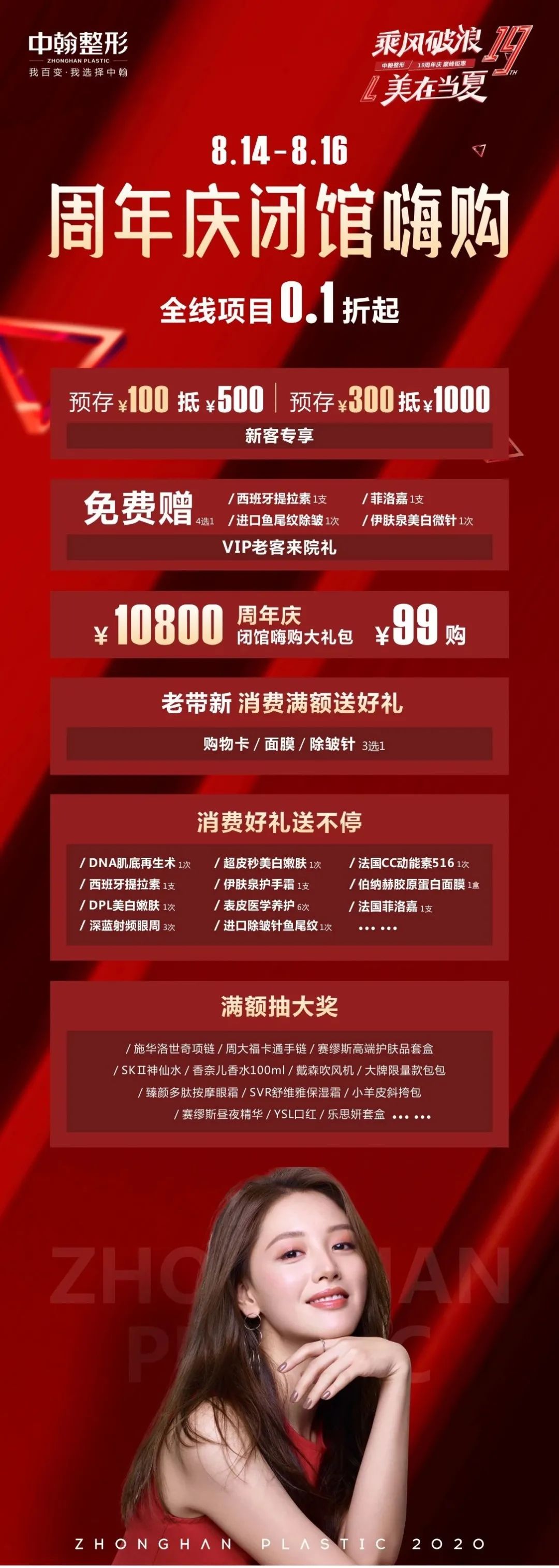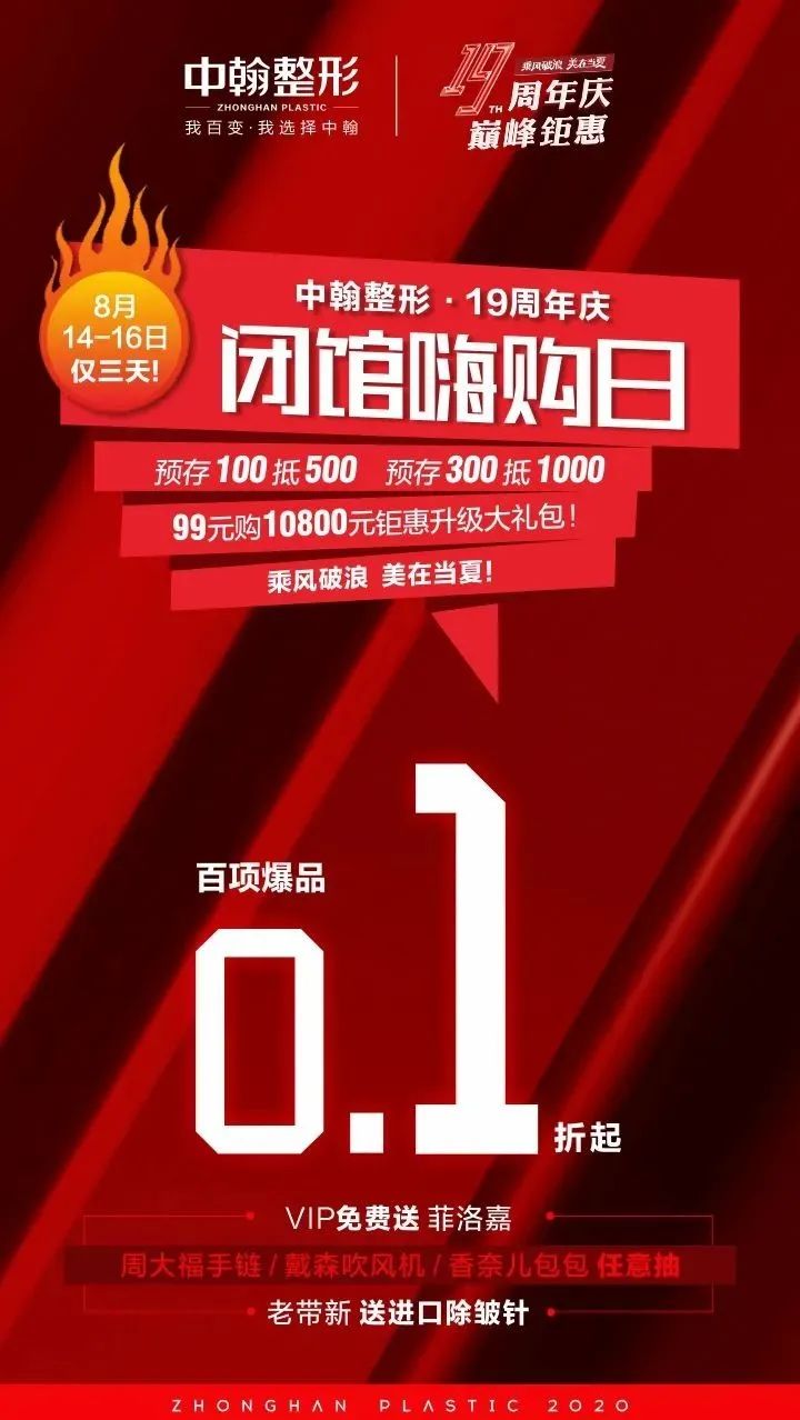 | 武汉中翰整形医院8月14-16日19周年庆·抄底嗨购来袭爆品钜惠 劲爆豪礼约定你 |