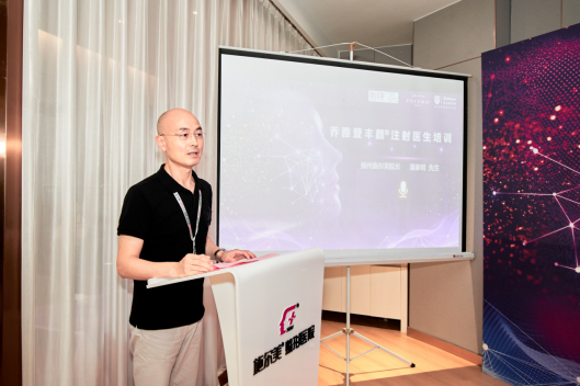 据邱筱婷经理介绍称,乔雅登丰颜玻尿酸采用HYLACROSS专利技术制造,集高凝聚性、高浓度、高交联度为一体,对于注射医师的各项资质均有高要求,非常重视对医师的注射培训。