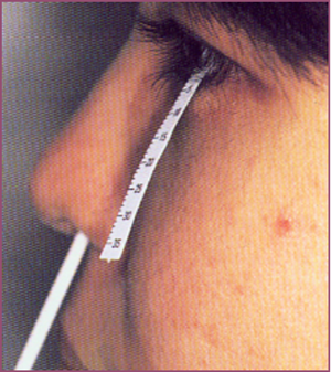 利用试纸来测试患者泪液分泌的情况,正常人一般能在五分钟内分泌足以浸湿10毫米或以上试纸的泪水;