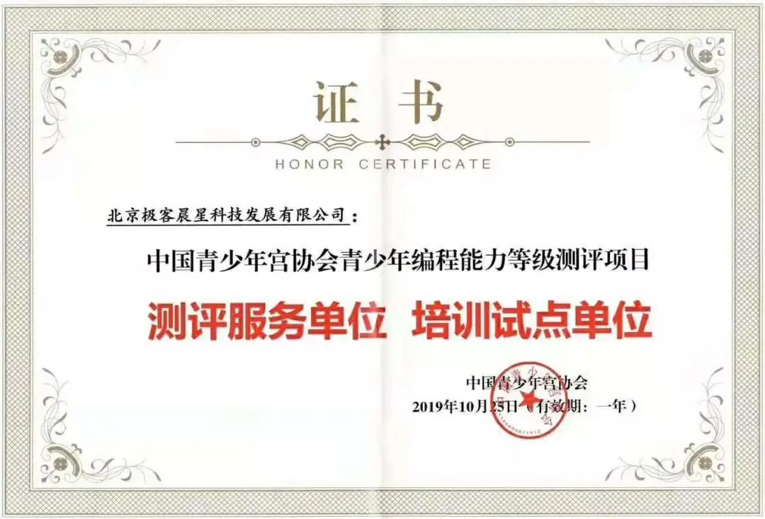 此外,青少年编程能力等级测评的证书的发放单位为中国青少年宫协会,是开展校外素质教育的重要活动阵地。