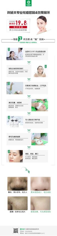 科黛肤针对痘痘进行透析油脂,杀菌除螨,根清痘痘,消炎排毒,疏通毛孔,精华修复等一系列的祛痘疗程。