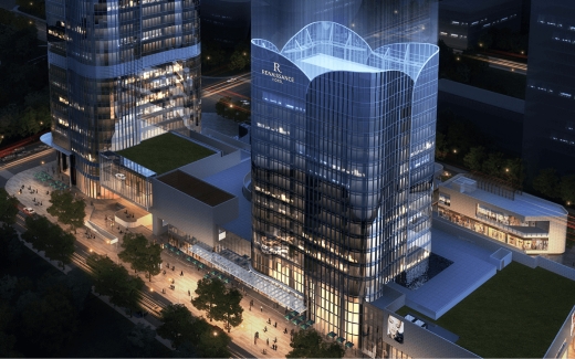 万丽酒店总建筑面积:200653.85㎡,其中地上建筑面积122504.63㎡,包括1栋43层(79619.86㎡)的超高层国际5A甲级写字楼(T1塔楼);1栋18层(33500㎡)的国际知名品牌酒店(T2塔楼);1栋独栋及商业裙楼(7120.98㎡);五层地下室总建筑面积78149.22㎡,包含5000㎡的商业地下室,1216个机动停车位及设备用房。