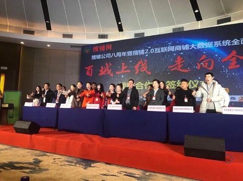 2020年1月12日,搜铺公司在中国西安欧亚经济论坛永久会址举行了“搜铺公司八周年暨搜铺2.0互联网商铺大数据系统全面升级 百城上线 走向全国”为主题的新闻发布会。陕西省互联网协会、陕西省中小企业协会、陕西省安徽商会、陕西省餐饮协会、华为西安研究所、西北工业大学等数十家单位参加。来自全国各地的20余位企业家代表参加了《战略合作》签约仪式。