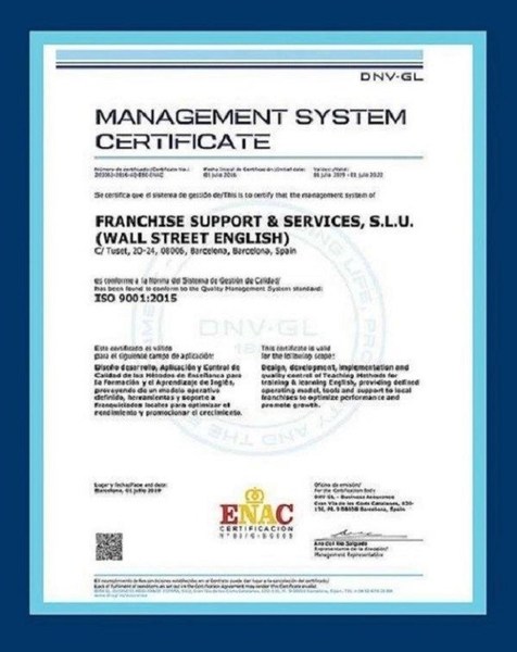 体系模式、师资团队上的高要求,高标准,让华尔街英语也获得了国际认可。2019年,华尔街英语国际成功通过了ISO9001质量管理体系的重新认证审核。自2004年首次符合ISO 9001标准起,华尔街英语已经通过了共计14次定期和重新认证审核。这一认证是用于证实组织具有提供满足顾客要求和适用法规要求的产品的能力。华尔街英语表示,作为语言培训企业,终身使命是体现在教学服务工作上的,而对华尔街英语而言,48年的发展轨迹和全球学员的体验是有力且长久的证明。
