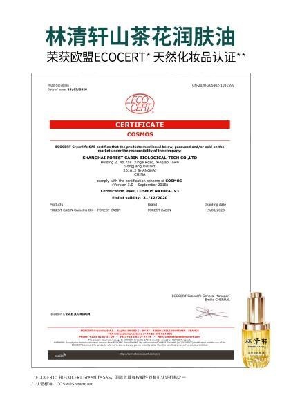 林清轩山茶花润肤油欧盟ECOCERT天然化妆品认证