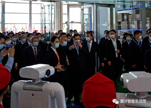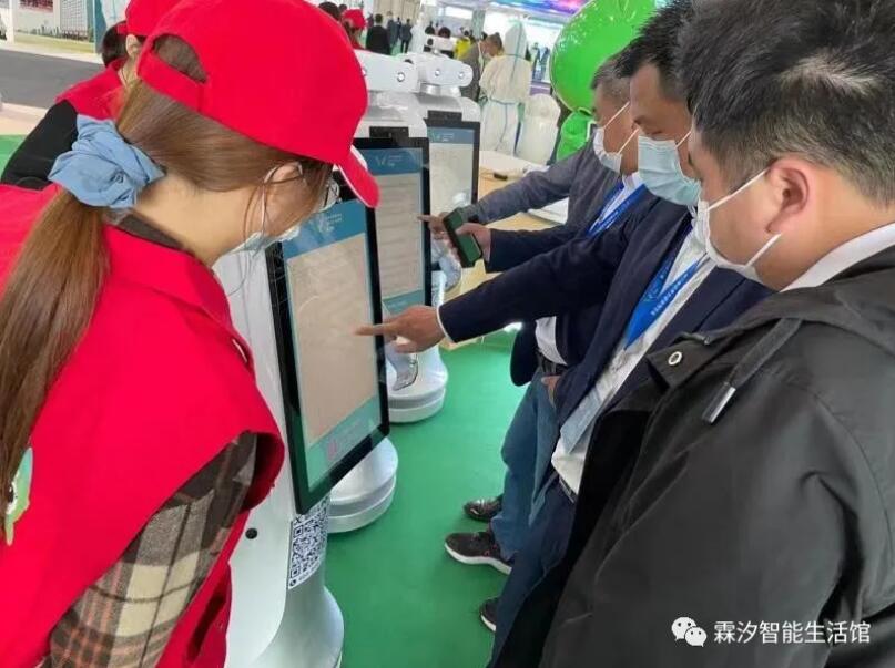 本次健博会健康共同体及每个场馆门口的近百台智能机器人均由湖北人工智能明星企业——武汉霖汐科技有限公司(简称:霖汐科技)提供。应勇书记、王晓东省长等领导及与会嘉宾共同在健康共同体处驻足,并由讲解人员详细介绍了本次大会的机器人科技元素,展示了湖北省在科技抗疫过程中的部分成果。