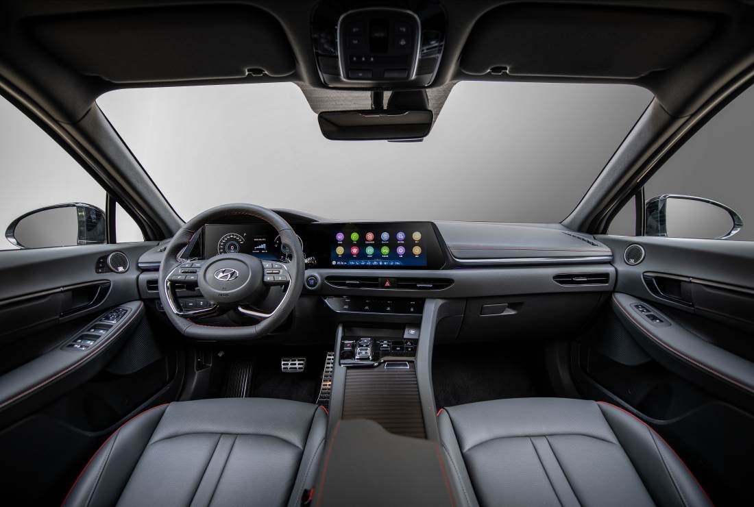进入第十代索纳塔车内,眼神将不由得被双12.3英寸超大智慧连体双屏显示系统所吸引。其以驾驶者为中心,运用源于隐形战斗机“Levitate”的设计灵感,利用更加扁平化的设计风格,打造出高科技感与活力感并存的数字化智能座舱。除了双12.3英寸超大智慧连体双屏显示系统外,SBW按键式电子换挡、驾驶室座椅电动12向调节、方向盘/前后排座椅加热和前排座椅通风功能更是为其加分不少。触控式双区自动空调带PM1.0 高性能复合滤芯,将进一步保护车内空气。吹着空调,听着JBL高级品牌音箱播放的歌曲,又是一段舒适的旅途。