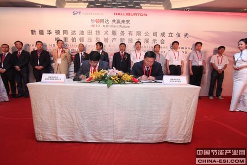 2014年7月9日,华油能源集团(中国领先的非国有油田技术服务企业)与美国哈里伯顿公司(全球最大的为能源行业提供产品及服务的供应商之一)在北京中国大饭店联合举办了双方合资设立的压裂增产服务公司——新疆华顿同达油田技术服务有限公司成立仪式。华顿同达公司将成为国内首家以油气田压裂增产服务为主营业务的中外合资高端油田技术服务企业。该公司落户在新疆维吾尔自治区国家级库尔勒经济技术开发区,服务对象以新疆地区各油气田为主,兼顾国内其他油气田。合资公司计划投资总额1亿美元,其中注册资本为3400万美元,华油能源集团出资比例51%,哈里伯顿出资比例49%。
