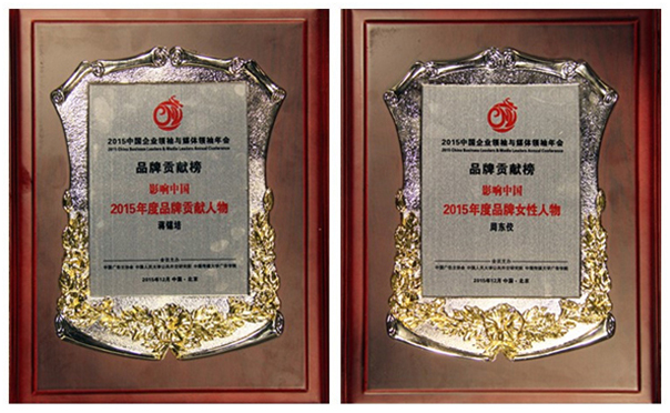 12月13日,在2015中国企业领袖与媒体领袖年会暨“品牌贡献榜”影响中国2015年度品牌盛典上,远东控股集团荣获“影响中国2015年度领军品牌”大奖,远东控股集团董事局主席、首席执行官蒋锡培荣获“影响中国2015年度品牌贡献人物”奖,远东控股集团总裁助理、首席行政官周东佼荣获“影响中国2015年度品牌女性人物”奖。周东佼上台领奖并发表《心有猛虎 细嗅蔷薇》主题演讲,品牌文化中心总监助理张云飞陪同参会。央视著名主持人阚丽君、姚雪松等主持。