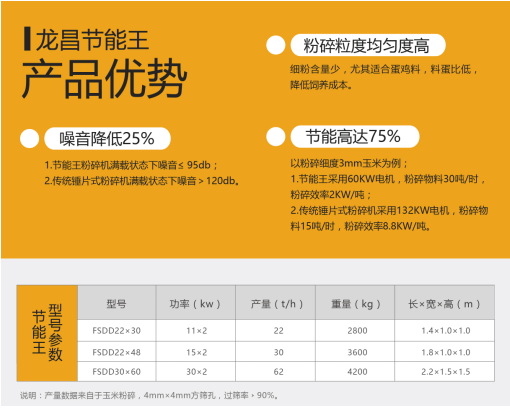 目前在我国农牧设备市场出现一款备受瞩目的新产品,那就是由龙昌机械研发的新式粉碎机——龙昌节能王。有消息称,即将上市的龙昌节能王极限节能可以达到75%,粉碎1吨玉米大概只要2度电。实测数据是怎么样的呢?
