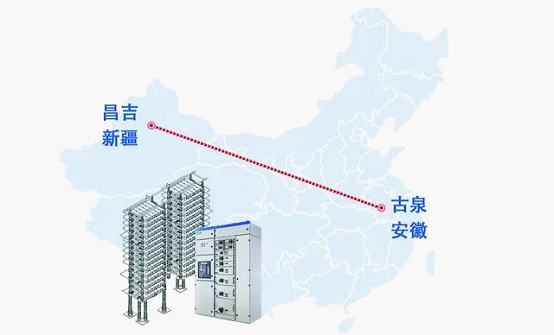 作为西电东送的重点项目之一,昌吉—古泉±1100千伏特高压直流输电线路工程起于新疆准东(昌吉)换流站,止于安徽皖南(古泉)换流站,途经新疆、甘肃、宁夏、陕西、河南、安徽六省区,线路路径总长度约3304.7千米,输送容量1200万千瓦,电压为±1100千伏,是目前世界上电压等级最高、输送容量最大、输送距离最远、技术最先进的特高压输电工程。