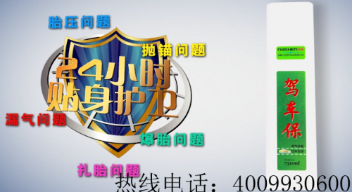驾车保24小时安全卫士是一种PH值中性,原材料由多种高分子化合物组成,无毒不易燃不粘胎的液体,也被广泛作为应急装备使用。适合于各类车辆的轮胎,不需要任何辅助工具,对小于6毫米的多个漏孔及慢漏气可在短时间内即可自动完成自动补胎,自动充气,随扎随补反复使用,安全。卫生,方便快捷,可以预防因为轮胎故障带来的交通事故,延长轮胎使用寿命。车备一瓶这样具有速补、 速充、 降温、 灭火功能新科技产品,将给您旅游、办事带来极大的方便,它可解您燃眉之急又可以备不时之需。