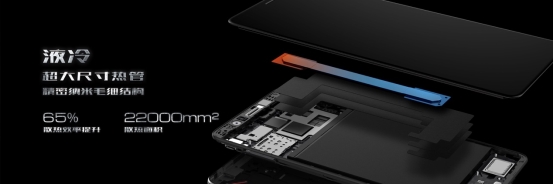 在努比亚红魔Mars的机身里,工程师加入了一根超大尺寸的液冷热管,其内部的纳米毛细结构拥有高达22000mm2的散热面积。在热管和三层石墨烯散热片的联携配合下,努比亚红魔Mars主控等高发热部位的热量会被迅速吸收,并传导到机身内部更大面积的低温区域,以实现热量的快速转移。