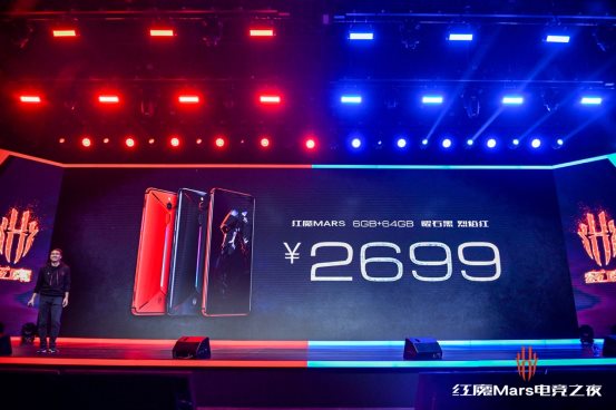 努比亚红魔Mars拥有曜石黑、烈焰红、战神迷彩三种颜色版本,其中6GB+64GB配置的曜石黑与烈焰红售价仅为2699元;8GB+128GB配置的曜石黑与烈焰红售价为3199元;顶级10GB+256GB配置的战神迷彩版售价3999元!努比亚红魔Mars将于发布会后在努比亚官方商城、努比亚线下体验店、京东商城开启预约,并于12月7日0点正式开售。