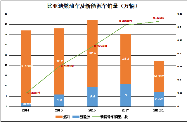 2014年以来,比亚迪燃油车销量在30万辆一线徘徊不前。2017年破位下行,预计2018年最好的结果不过是回到30万辆以上。但正如上文所说,比亚迪已经不是传统汽车企业,不应以燃油车销量多寡判定业绩优劣。