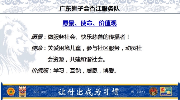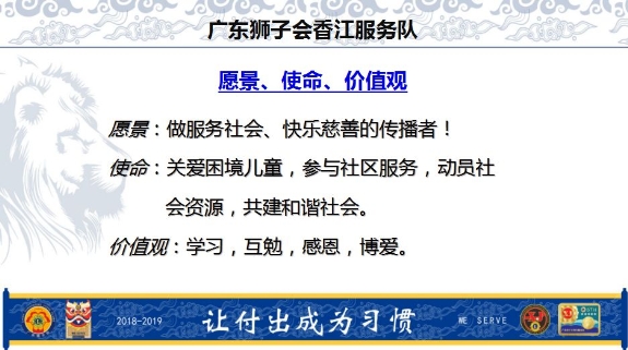 广东狮子会香江服务队1819年度队长胡春龙狮兄就职演说和感言(狮子会竞选宣言、演说和承诺/狮子会1819年度工作计划)
