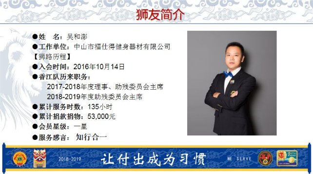 广东狮子会香江服务队1819年度队长胡春龙狮兄简介