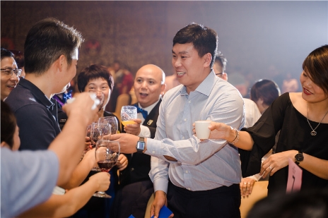 大汇堂董事长胡春龙、总经理胡春腾、胡春龙父亲胡国柱以及大汇堂老板家人们共同出席2018年9月13日"香江五载.龙承狮爱"广东狮子会香江服务队2018-2019年度就职典礼暨五周年感恩慈善晚会。