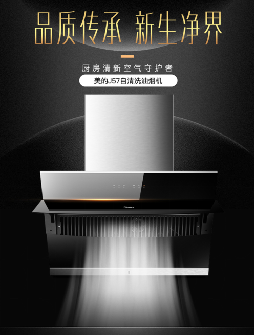 油烟自动洗,美的J57自清洗油烟机开启无烟厨房新净界