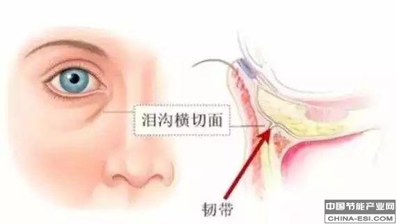 · 紧靠眼眶的位置是一条韧带,如果韧带天生比较紧,作用在皮肤上的力量强,泪沟就会明显。