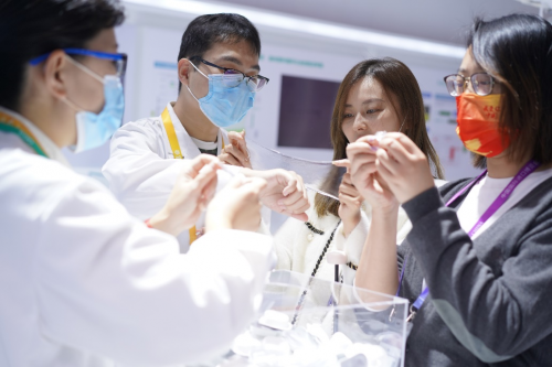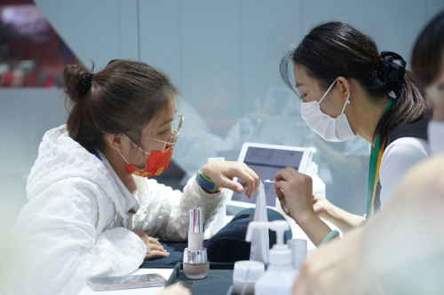 在前几届进博会上大放异彩的花王尖端技术——“Fine Fiber Technology”(超细纤维技术)所打造的“est媛色蓓优密美丝膜”系列产品展示区域也聚集了很多慕名而来的观众。随着超细纤维从专用机器中喷洒而出,层叠而成的薄膜轻柔地覆盖于肌肤表面,轻轻按压后与肌肤表面几乎融为一体,随肌肤张弛而动,令体验者啧啧称奇。