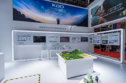 另外,在“未来生态”版块的图文展板前,许多观众正在聚精会神的浏览着关于花王契合“Sustainability as the only path”(将可持续发展作为唯一的发展之路)这一远景目标所做出的努力和取得的成果。为促进脱碳社会的实现,花王集团制定了全新的“脱碳”目标——2040年达到零“排放”,2050年实现负“排放”。通过介绍还可以了解到,致力于环保经营的花王集团一直以来都努力在原材料采购、开发、生产、物流、使用及废弃等产品的整个生命周期的各个环节减少碳排放。现场观众在详细了解了花王在环保领域的贡献后,不禁感叹到“原来我们使用的每一件产品背后,在产品相关的各个环节,花王都在与我们一同推进环保。”