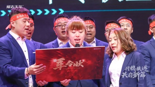 启动会上举行授旗仪式,吹响营销“集结号”,点燃了与会人员的激情与斗志。各大区进行目标认领并签定军令状,誓言铿锵,展现战则必胜的决心!