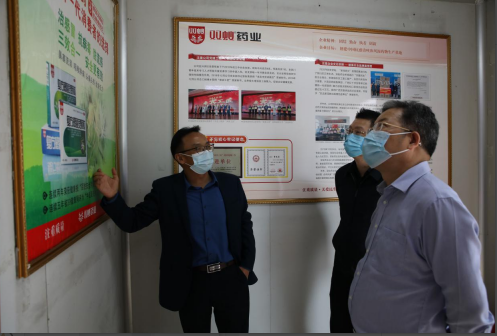 彭书记一行人深入车间,了解新一代感冒药——复方感冒灵颗粒等产品