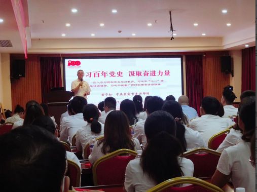 2021年7月5日,双蚁药业党支部邀请来宾市党史专家黄华松老师给全体员工讲授党史课
