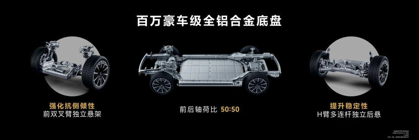 问界M5 EV搭载HUAWEI DriveONE纯电驱智能平台,前交流异步电机+后永磁同步华为电机四驱组合总功率365kW,百公里加速4.55秒,配合前双叉臂+后H臂多连杆铝合金独立悬架组合,拥有媲美超跑的操控体验。