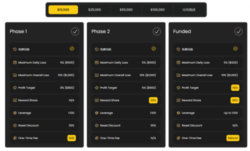 对新手来说,参与Challenge套餐的核心收益,远不止“零风险练手”这么简单。在套餐的交易训练中,你能通过真实的交易操作练出真本事,平台还会根据你的交易表现给最高90%的交易绩效分成,帮你精准找到自己的薄弱项,针对性优化提升;当你完成相应的交易考核后,还能解锁更高额度的模拟资本权限,在更大的交易场景中打磨策略;更重要的是,这个套餐还是衔接平台进阶账户的专属通道,考核达标后可直接升级,让你的交易成长之路无缝衔接。