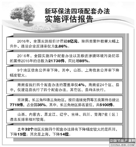 新环保法四项配套办法实施评估报告出炉 违法处罚力度大