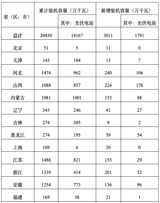 国家能源局:2019年光伏发电并网运行情况