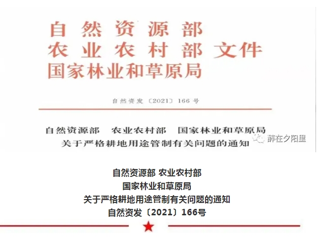 11月27日,自然资源部、农业农村部、国家林业和草原局联合下发了《关于严格耕地用途管制有关问题的通知》(自然资发〔2021〕166号),提出:
