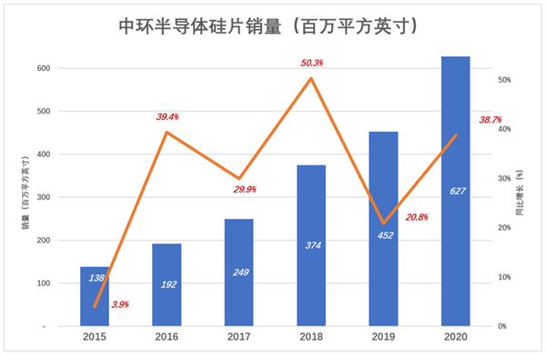 “十三五”期间,中环半导体硅片销量年均复合增速为35.5%。