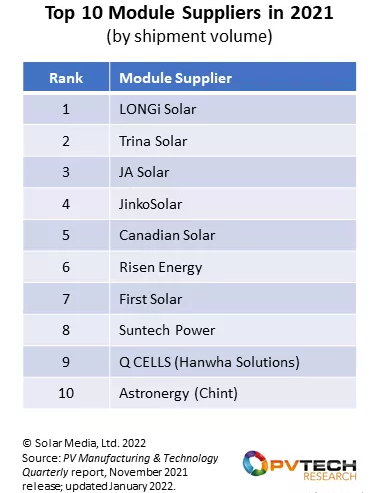 2021年,太阳能光伏行业有许多不停变化的目标,人们对上游产能和整体组件出货水平也有很多的疑问。尽管如此,计算出这一年光伏组件供应商的前10名却是相当简单的一件事。