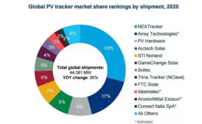 2020年全球光伏跟踪系统出货量排名 来源:伍德麦肯兹
