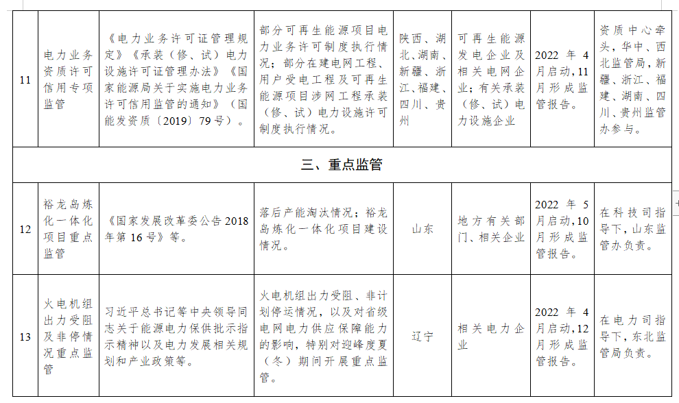 新能源安全专项监管等,以下为详情: