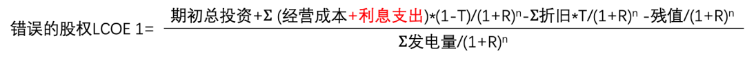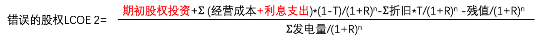 误区3:既然LCOE是全口径成本,是否应该在分子上增加利息支出才更完整?再把项目IRR改为股权IRR,从而可以得到股东层面LCOE?