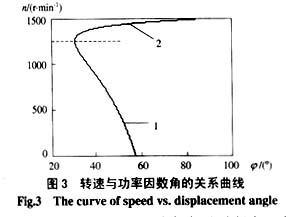 对于给定的电机,当供电频率不变时,其同步转速ns是确定的,由n=ns(1-s)及式(1)可得电机的功率因数角Φ与电机转速n之间的函数关系: